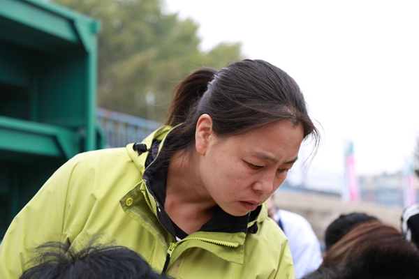 大风瞬息而至,一声巨响传来,狂风竟将100米终点草坪上的帐篷吹到了看台下的工作点。我奋力睁开被风迷住的眼睛,却发现刚刚还在身旁的邹娜已经在苦苦支撑帐篷,她身边的同学们都被吹得东倒西歪,她却似山一样稳定,挡在学生的身前。“我会尽自己最大的努力去照顾每一个学生”。邹娜对于学生的爱不仅如此说,也如此做。