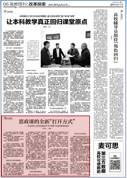 4月29日,《中国教育报》第6版以“思政课的全新‘打开方式’”为题,详细报道了我校“学习筑梦”系列思政选修课的探索实践。
