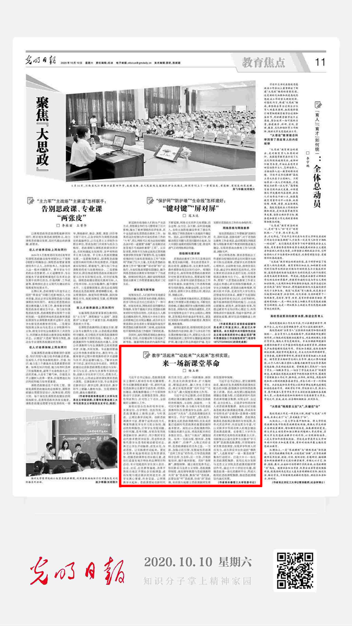 为深入学习贯彻习近平总书记关于思政课的重要论述,10月10日,我校党委书记杨玉新在《光明日报》发表题为“来一场新课堂革命”的理论文章。