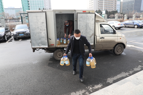 “在重大疫情面前,企业应该挺身而出,承担更多的社会责任!” 这是吉林省宝庆生物医药科技有限公司创业者王宝财的心声。3月9日,王宝财向学校捐赠700—800公斤消毒液,用来给教学楼、学生宿舍消毒。