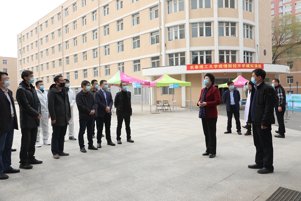 在学生公寓演练结束后,杨玉新见到公寓门口的各学院党委副书记后,亲切走上前,对大家在疫情防控期间的辛勤工作表示感谢。她说,自疫情暴发以来,各学院党委副书记始终工作在育人一线,借助各种网络平台,向学生表达关心、传递温暖,确保学生思想政治教育工作不缺位、不断线。目前虽然疫情防控取得了阶段性的胜利,但仍然不能放松警惕,尤其要做好学生返校复课的各项准备工作,同时也要做好毕业生离校的相关工作,实现疫情防控与管理服务两不误。