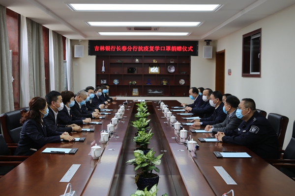 5月9日,吉林银行长春卫星支行副行长李彦春、张建华来到我校,捐赠10万枚医用口罩,为确保学生安全返校献上一份力量。学校领导王清和、杨光、李明勋在东区办公楼第一会议室热情接待。