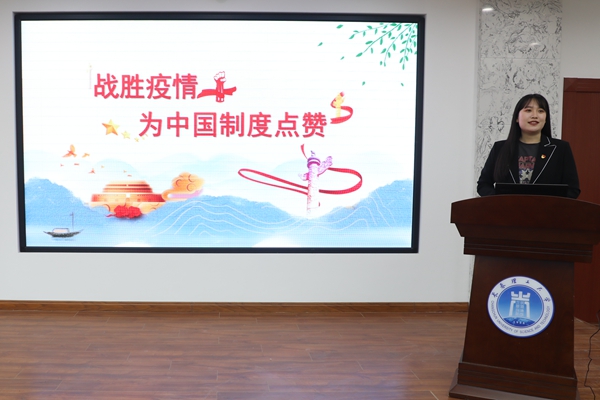 龙时结合抗“疫”中不断发生着的“中国故事”,带领同学们全方位、立体化感受战“疫”中的中国精神;李明阐述中国政府用实际行动构建人类命运共同体的理念,教育引导学生要有世界的眼光、人类的情怀,将自己的青春梦与中国梦、世界梦紧密相连;杨璐从党的集中统一领导、以人民为中心的价值追求、集中力量办大事三个方面,展示了全国一盘棋的磅礴力量。