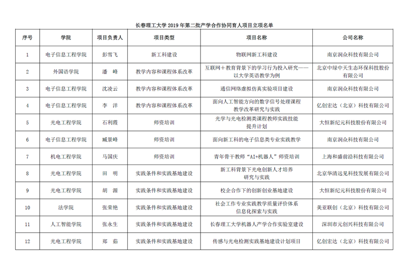 此次获批的项目中,包含“新工科建设类”项目1项、“教学内容和课程体系改革类”项目3项、“师资培训类”项目3项、“实践条件和实践基地建设类”项目5项。
