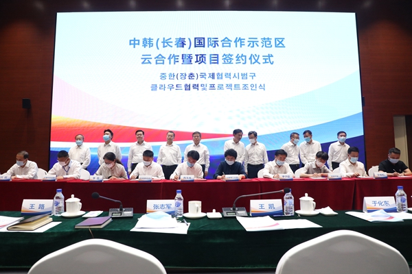 6月29日,中韩(长春)国际合作示范区举行全球首场云合作暨项目签约活动,37个重点项目现场集中签约,签约金额达620亿元。我校党委书记杨玉新代表学校与中韩(长春)国际合作示范区负责人高玉龙签订战略合作协议。