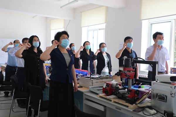 7月1日,在中国共产党成立99周年之际,校党委书记杨玉新深入联系支部——机电工程学院党委基础支部参加党员活动。党委组织部、教师工作部部长谭荣峰,机电工程学院党委书记田之华陪同参加。