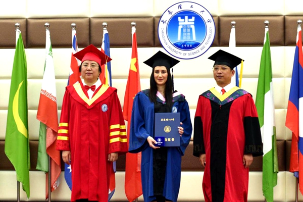 7月3日,学校2020届国际学生毕业典礼在南区研究生教学楼一楼报告厅举行。来自21个国家的51名学生获得硕士学位,来自7个国家的9名学生获得学士学位。受新冠肺炎疫情影响,38名在校毕业生代表在现场参加典礼,其他人同步观看视频直播。校党委书记、校学位委员会主任杨玉新为毕业生拨流苏,副校长付跃刚为他们颁发毕业证书、赠送纪念品。