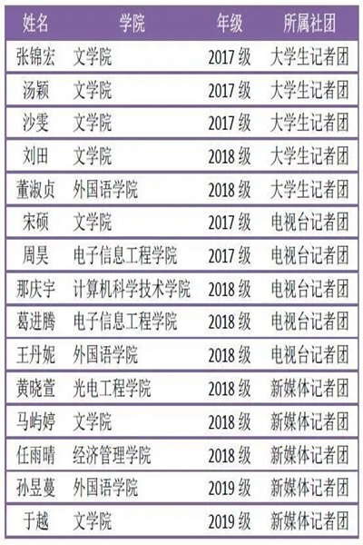 随后,校报编辑部教师贾惠淇、电视台教师王帅文、新媒体记者团团长陈新分别介绍了校媒联盟所辖的3支学生记者队伍的职能分工和主席团成员。