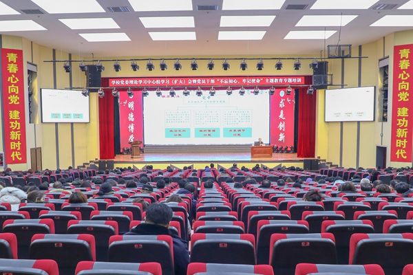会议由校党委书记杨玉新主持。校院两级党委理论学习中心组成员、教师党支部书记、辅导员、机关全体干部500余人参加培训。