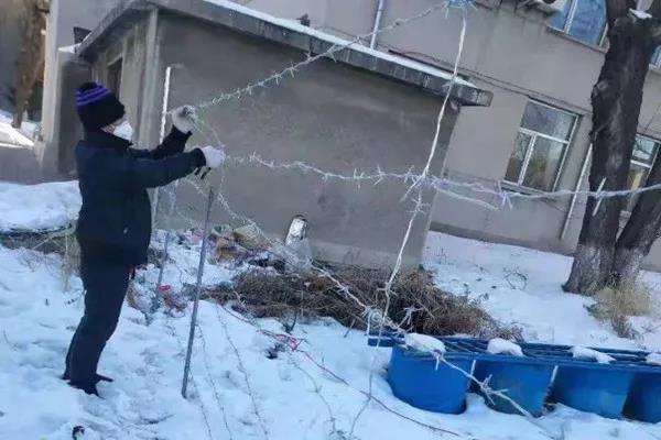 风雪中,后勤工作人员守护校园