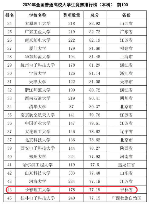我校位居2020年全国普通高校大学生竞赛排行榜第43位