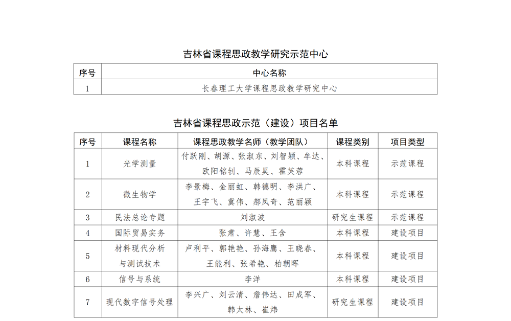 近日,吉林省教育厅发布了《吉林省教育厅关于公布首批省级课程思政示范(建设)项目名单的通知》(吉教高[2021]5号),我校申报的课程思政示范(建设)项目全部入选,获批省级课程思政教学示范研究中心1个、省级课程思政示范课程3门(其中,研究生课程1门)、省级课程思政课程建设项目4项(其中,研究生课程1门),获批数量位列省属高校首位。