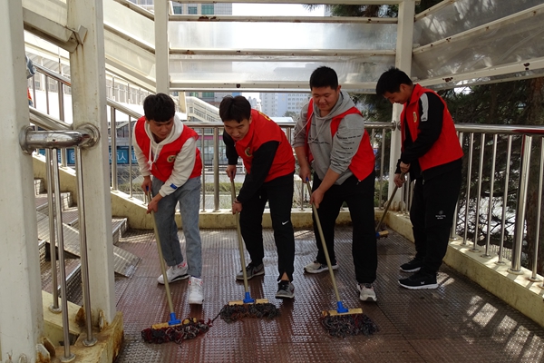 首页» 理工新闻» 生命科学技术学院开展清扫天桥志愿服务活动 华体会手机网页版登录入口:2021-04-22 阅读次数: 次 4月21 日,生命科学技术学院“心源”志愿者服务队组织开展了“传承雷锋精神,清扫理工天桥”志愿服务活动。40余名学生志愿者带着扫把、拖布、抹布、水桶等工具,认真清除理工桥栏杆和路面的尘土。经过1个多小时打扫后,理工桥焕然一新。据了解,此项志愿服务活动将长期开展。 (供稿:生命科学技术学院 撰稿:刘帆 摄影:金家乐 审核:孙永生 编辑:周南)