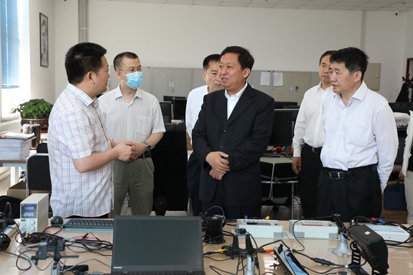 吉林省教育厅副厅长许世彬陪同前来。我校校长杨华民、副校长王清和、总会计师李明勋等在基础实验实训中心楼前热情迎接。