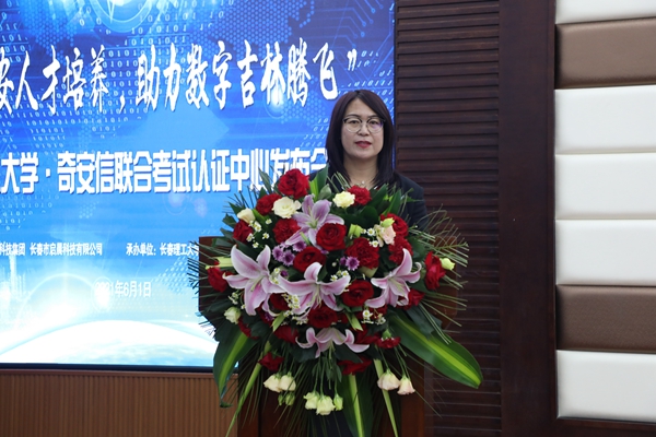 长春市启晨科技有限公司董事长陈晨,介绍了认证中心运营的宗旨和培训业务范围,将共同打造培养—认证—就业—提升——进阶的网络安全人才职业生涯发展全链条生态,以职业化、专业化、精细化为导向助力个人成长、助推行业发展。