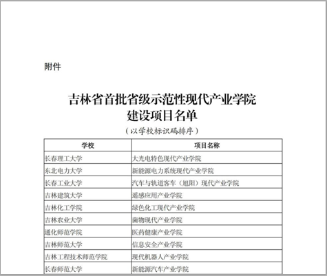 日前,吉林省教育厅、吉林省工业和信息化厅公布了首批省级示范性现代产业学院建设项目名单,我校大光电特色现代产业学院获批立项。