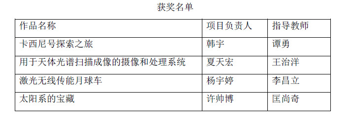我校学生在第四届全国大学生天文创新作品竞赛中获佳绩