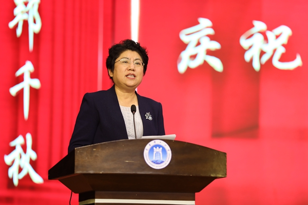 校党委书记杨玉新发表讲话。她代表学校党委,向全校教师和教育工作者致以节日的问候,向受到表彰的先进集体和先进个人表示热烈祝贺,领学习近平总书记给全国高校黄大年式教师团队代表的回信,深情回顾了一代又一代理工人投身国家建设、承担时代重托的责任担当,号召全体教师以先进教师为榜样,忠诚党的教育事业,见贤思齐,比学赶超,努力在塑造学生品格、品行、品味的育人过程中作出更大的贡献。