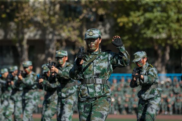 伴着雄壮的《中国人民解放军军歌》,历经了两周军训淬炼的四千余名参训同学戎装齐整,精神抖擞,带着蓬勃的朝气,满怀豪迈的激情,口号嘹亮、精神饱满地依次通过主席台。在随后军训成果汇报表演中,擒拿拳方队动作利落,出招迅速,表现出力量之美,场面精彩热烈。战术方队模拟了实战场面,展示了战术手语、队形等内容,有力的动作、默契的配合,赢得全场阵阵掌声。