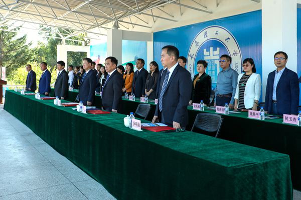 学校领导杨华民、王清和、张宏、吴健、杨光、李明勋,各学院及相关职能部门负责人参加典礼。副校长张宏主持典礼。