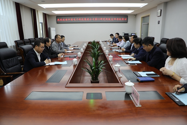 中国电子科技集团公司第十一研究所所长专务助理李青、科技处处长冯国旭、光电焦平面事业部主任王成刚陪同来访,学校相关部门负责人参加座谈。