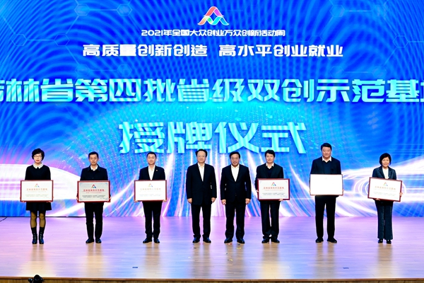 省委书记景俊海、省长韩俊出席大会,并为吉林省第四批省级“双创”示范基地代表授牌。我校校长杨华民代表学校接受省长韩俊授牌。