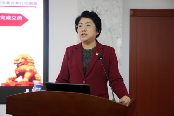 杨玉新介绍了习近平总书记在庆祝中国共产党成立100周年大会上重要讲话的意义,结合中国共产党的百年奋斗历史,重点解读了“四个历史时期”“四个伟大成就”及向世界做出的“四个庄严宣告”。