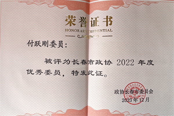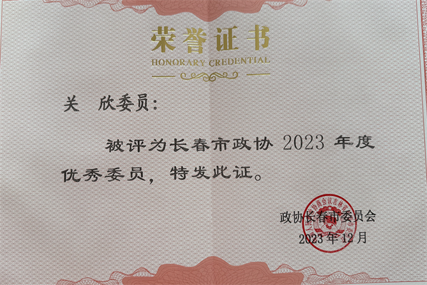 会议期间,姜会林、付跃刚、闫钰锋、李振辉、侯玉秀、杨阳、关欣联名提案《关于加强组织、建好“光谷”的建议》被评为2022年度优秀提案。李振辉所在界别委员活动小组荣获2022年度优秀界别委员活动小组活动组织奖,付跃刚、魏志鹏所在界别委员活动小组荣获2023年度优秀界别委员活动小组履职贡献奖,李丽、侯玉秀、关欣所在界别委员活动小组荣获2023年度优秀界别委员活动小组活动组织奖。付跃刚、关欣分别荣获长春市政协2022年度、2023年度“优秀委员”称号。