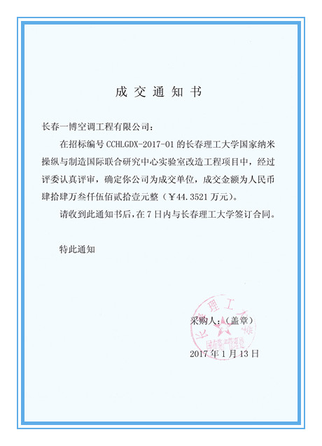 成交供应商:长春一博空调工程有限公司
