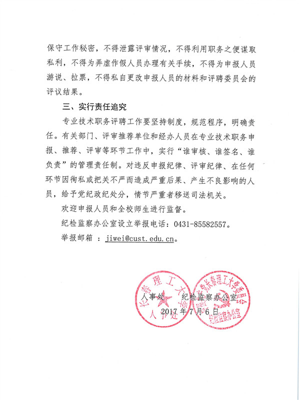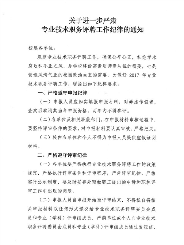 关于进一步严肃专业技术职务评聘工作纪律的通知