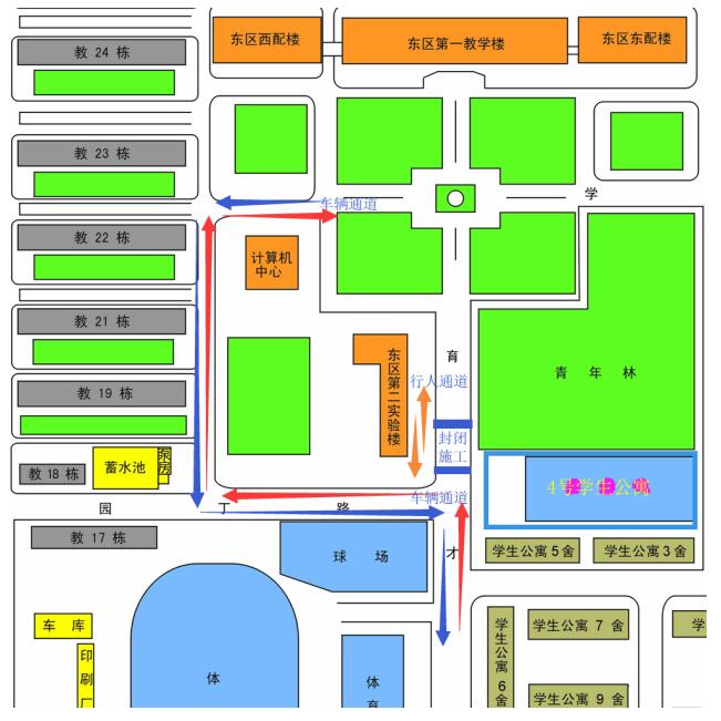 由于华体会手机网页版登录入口4号学生公寓外网施工,将临时占用育才路进行封闭施工,所有车辆从园丁路或网络中心北侧大门行至家属区,从网络中心北侧或园丁路大门进入,双向通行。行人可沿封闭施工围挡西侧通行。封闭时间自2019年6月28日晚19:00至6月30日晚17:00。封闭区域及通行路线见下图所示,封闭期间给广大师生带来不便,敬请谅解。
