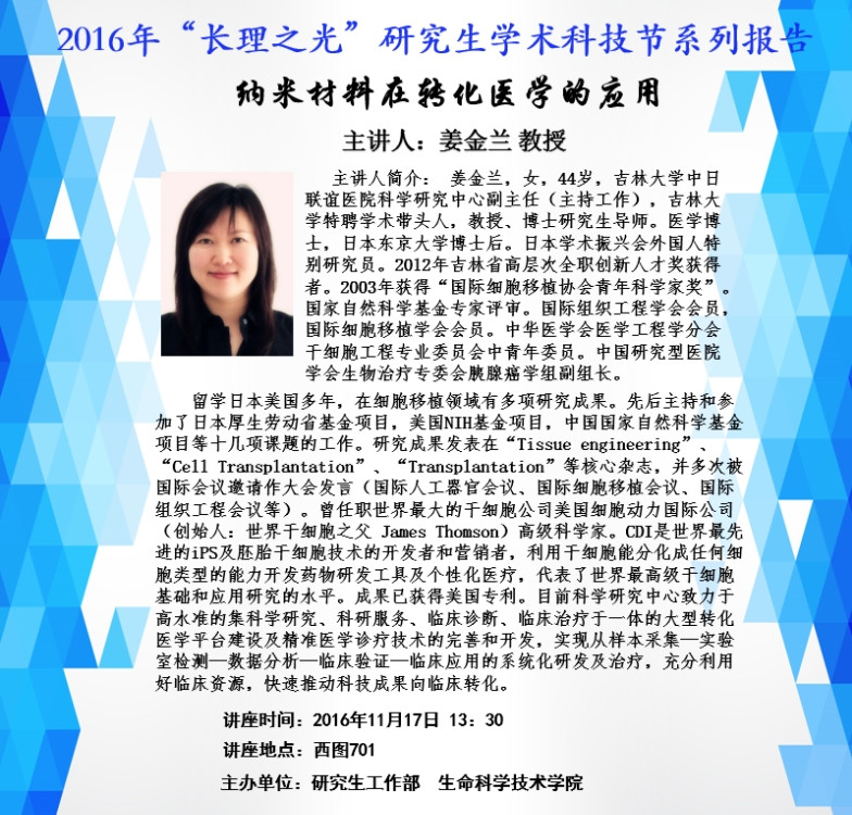 2016年“长理之光”研究生学术科技节系列报告:纳米材料在转化医学的应用