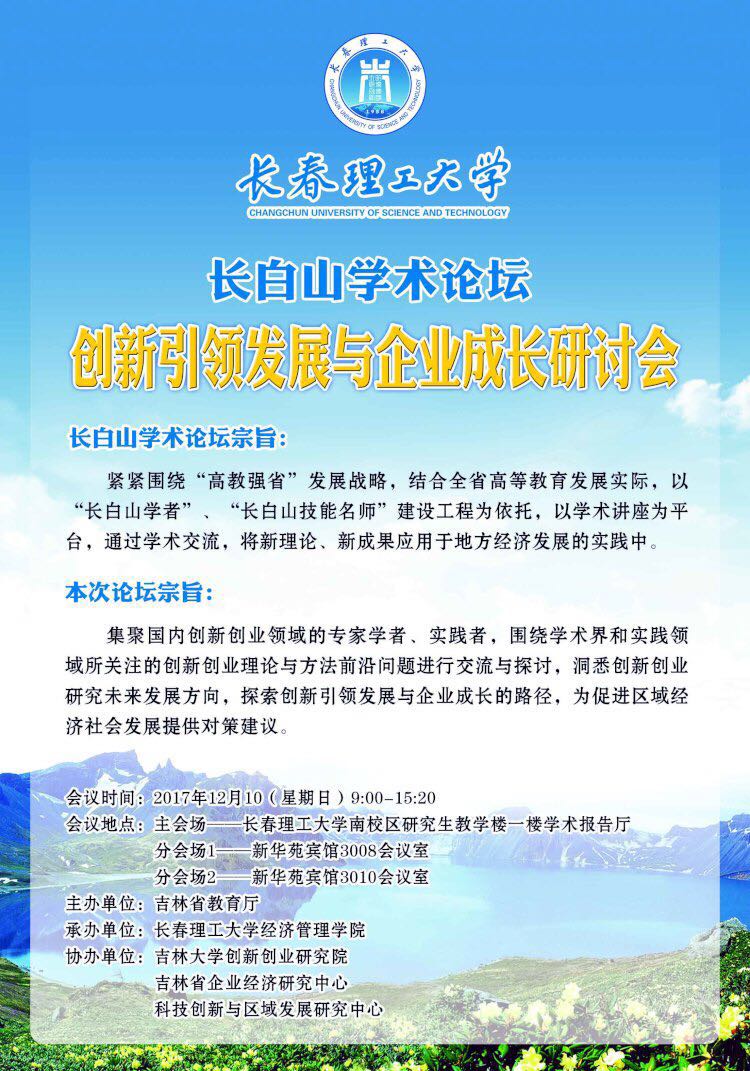 经济管理学院长白山学术论坛——创新引领发展与企业成长研讨会