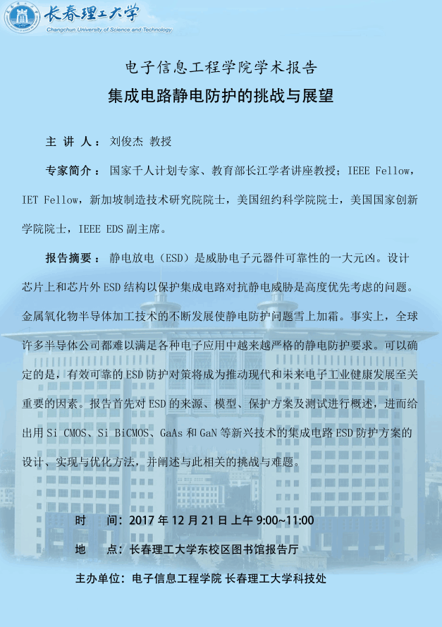 电子信息工程学院学术报告—集成电路静电防护的挑战与展望