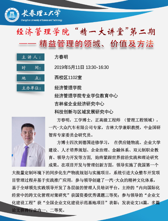 经济管理学院“精一大讲堂”第二期——精益管理的领域、价值及方法