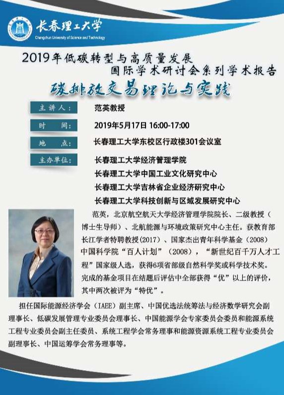 2019年低碳转型与高质量发展国际学术研讨会系列学术报告