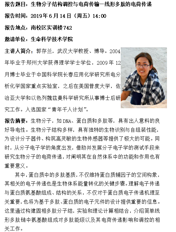 研究生学术科技节名家讲坛——生物分子结构调控与电荷传输—线形多肽的电荷传递