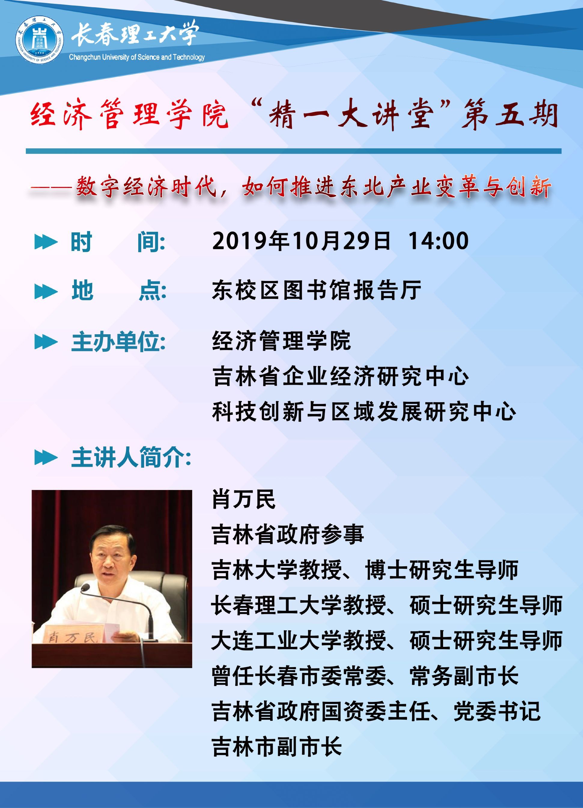 经济管理学院“精一大讲堂”第五期——数字经济时代,如何推进东北产业变革与创新