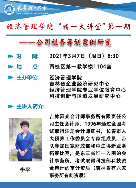 经济管理学院“精一大讲堂”第一期——公司税务筹划案例研究