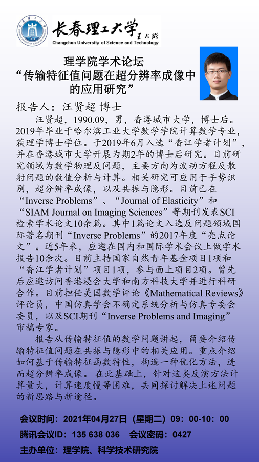 理学院学术论坛——“传输特征值问题在超分辨率成像中的应用研究”