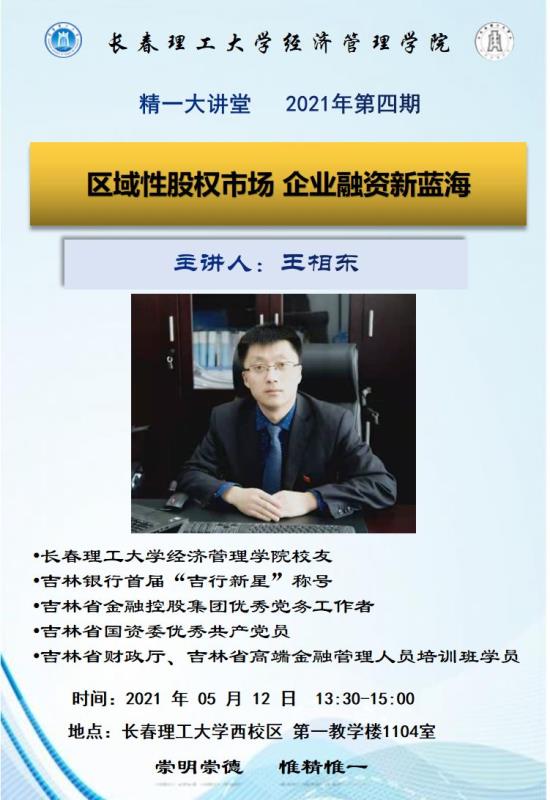 经济管理学院精一大讲堂2021年第四期——区域性股权市场 企业融资新蓝海