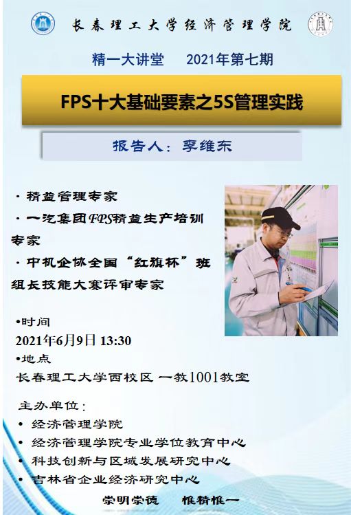 经济管理学院精一大讲堂2021年第七期——FPS十大基础要素之5S管理实践