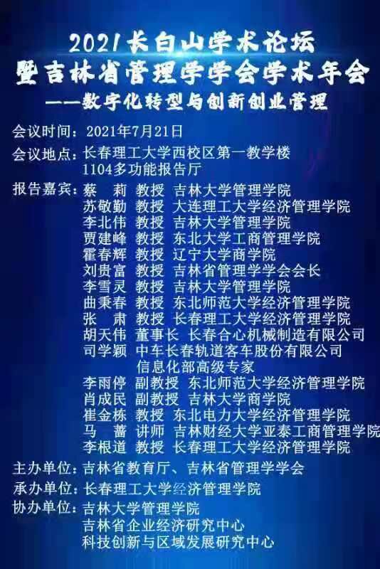 2021年长白山学术论坛暨吉林省管理学学会学术年会——数字化转型与创新创业管理