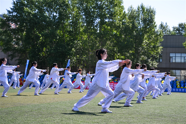 赛场外,军体部教师程嘉龙带领太极拳表演队率先登上“绿茵舞台”。同学们身着传统太极服饰,步履沉稳,一招一式间体现了“以意领气,以气领形”的太极特质,中华优秀传统文化在此延续。各学院团体操表演同样精彩纷呈,青春激昂的旋律,随风起舞的裙摆,矫健有力的身姿,赢得观众们掌声不断。